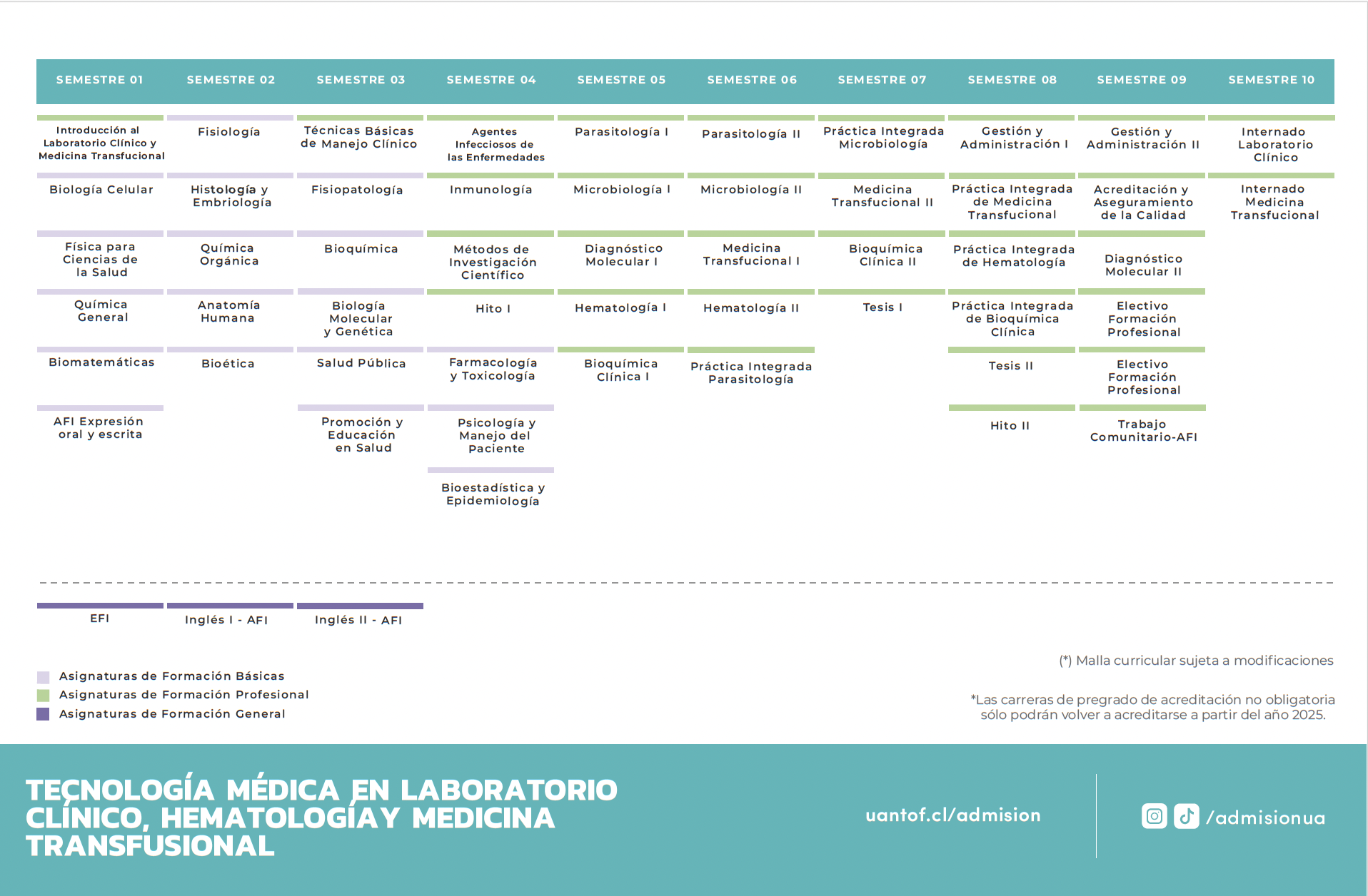 Las áreas de desempeño del Tecnólogo Médico en Laboratorio Clínico, Hematología y Banco de Sangre, son: Banco de Sangre, Hematología, Microbiología, Parasitología, Química Clínica, Inmunología y Administración.