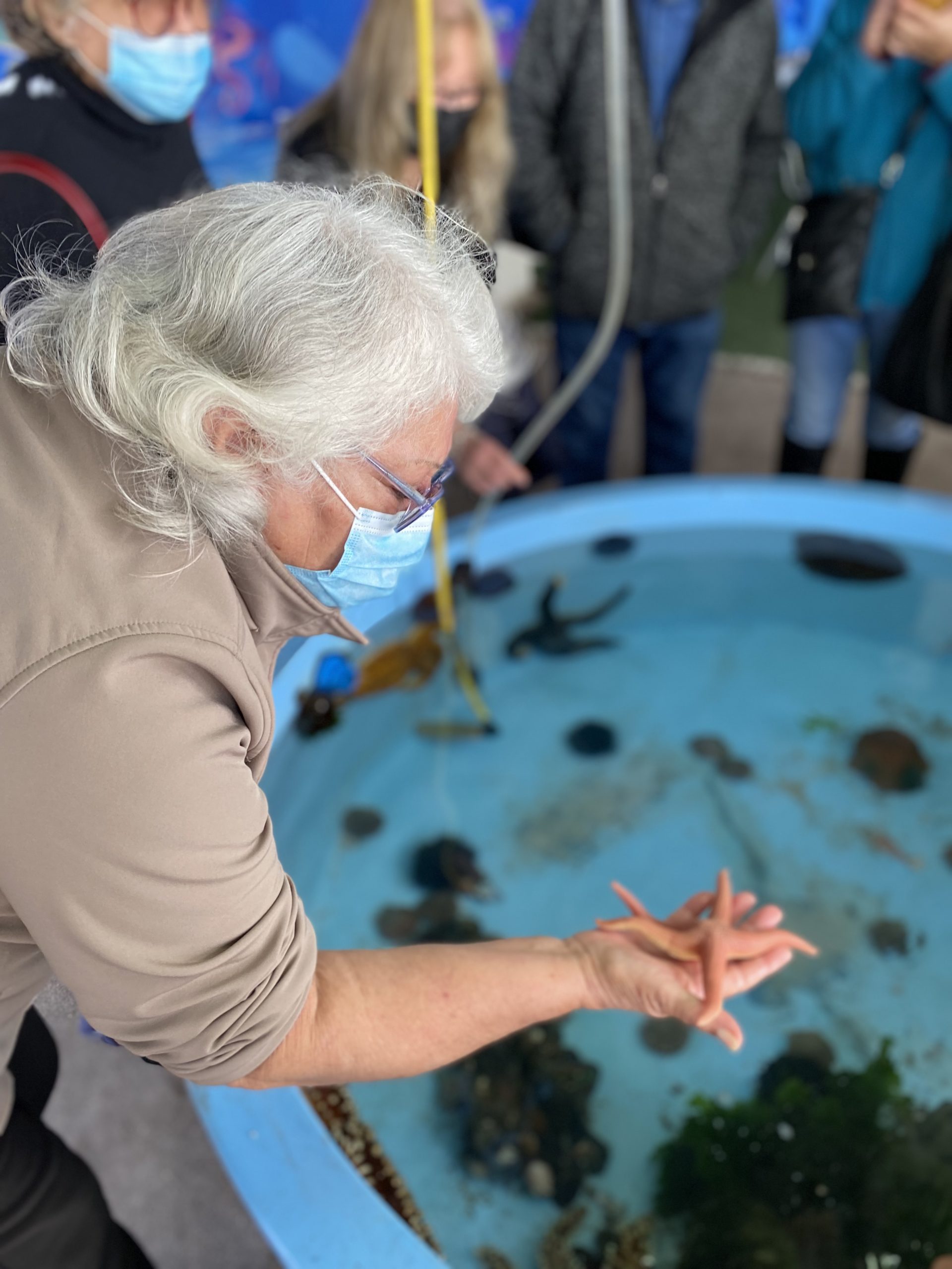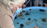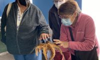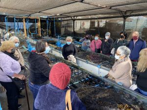 Las y los adultos mayores visitaron además el proyecto “Conociendo el Mundo Marino”, una tradicional muestra de especies costeras como estrellas y soles de mar, almejas, choritos y jaibas, entre otros, donde la delegación pudo activar su sentido del tacto e interactuar con los ejemplares presentes en piscinas de agua salada.