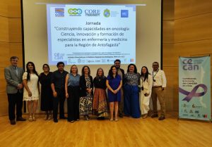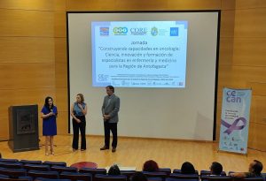 La jornada contempló la ponencia “Desafíos en cáncer región de Antofagasta”, de Álvaro Montiel, encargado de Registro Poblacional de Cáncer de la Seremi de Salud; posteriormente el director alterno de CECAN, Bruno Nervi y la directora de postgrado de la Escuela de Enfermería de la PUC, Dra. Francisca Márquez, presentaron la exposición “Antofagasta 2030: Formación de capital humano avanzado en oncología para la macrozona norte”.