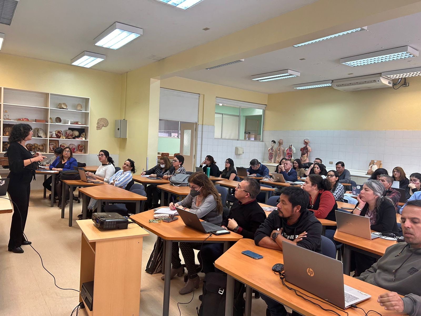 En el trascurso de la tarde, el trabajo se trasladó al Campus Coloso de la Universidad de Antofagasta, donde se dictaron los talleres para la inclusión de competencias en salud digital “Selección de competencias, niveles de integración curricular y recursos didácticos para la formación de la Salud Digital” y “Estrategias de inclusión de competencias a nivel curricular y formativo”.