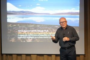 El seminario comenzó con la exposición “Suelos, humedales y desierto de Atacama” dictada por el biólogo PhD y fundador del CREA, Dr. Carlos Guerra Correa, enfocada en la definición de los tipos de suelos, los instrumentos de conservación (Convención Ramsar) y los servicios ecosistémicos que ofrecen este tipo de espacios naturales.